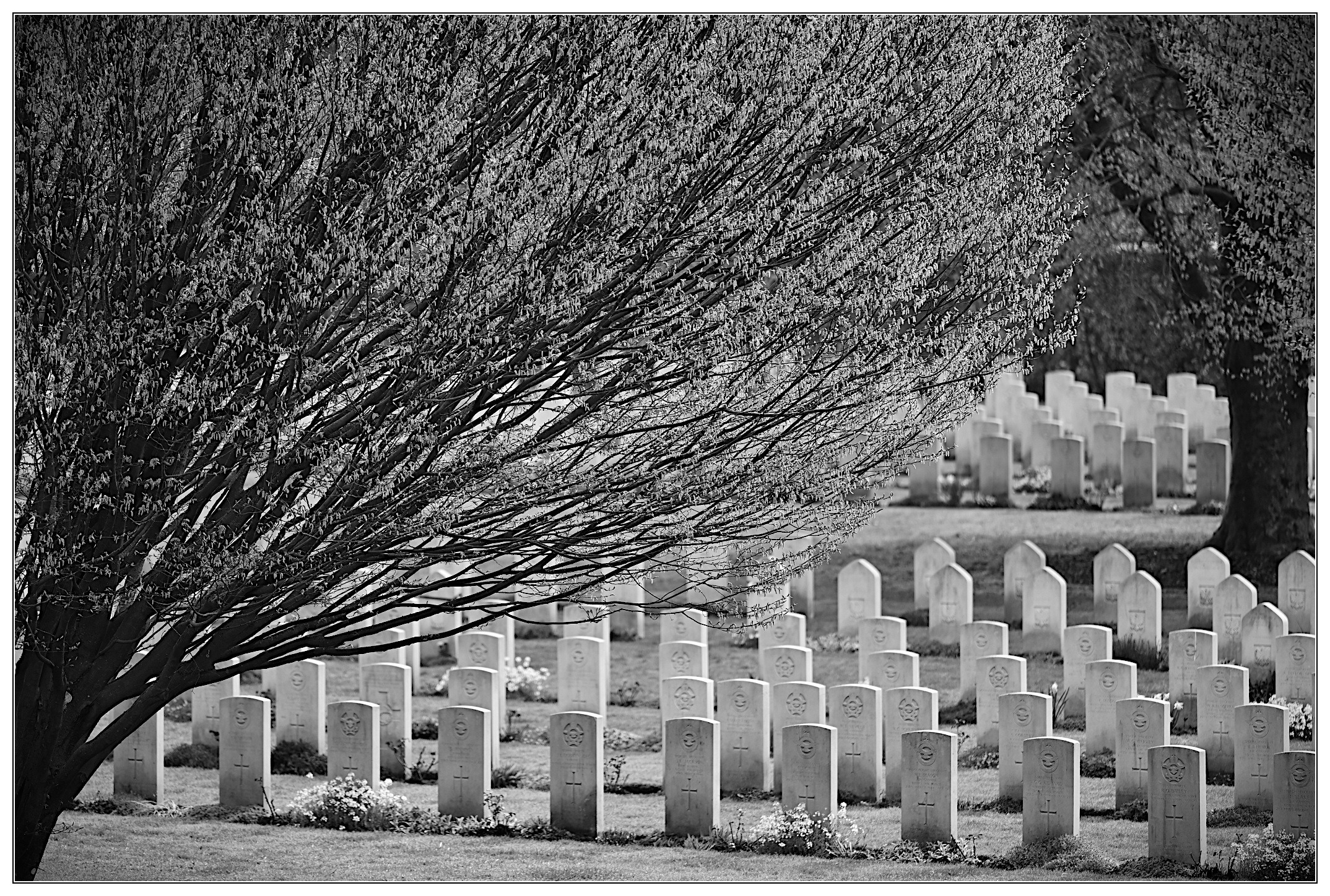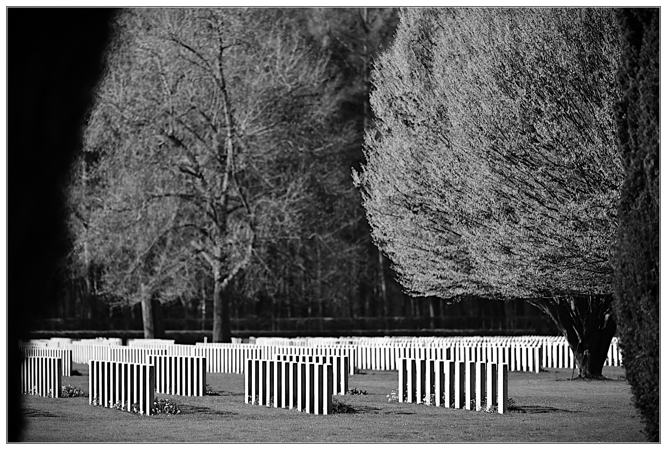 heute war ich - nicht zm ersten Mal - im Reichswald Forest War Cemetery, liegt hier um die Ecke. Es ist ein besonderer Ort - die größte Kriegsgräberstätte des Commenwealth in Deutschland, es ist ein Ort, der gleichermaßen erdet, wie demütig und dankbar und auch still macht. Wenn man - ich jedenfalls - durch die Reihen der Gräber geht und die Zahlen liest... 20, 22, 21, 25, ... dann komt ganz schnell der Moment, wo man - ich jedenfalls - eine Weile innehalten muss. Wir leben heute im hier und jetzt so wie wir leben, auch weil diese jungen Leute bzw. ihre Überreste hier liegen. Ich bin jemand, der sehr gefühlsorientiert auch an solche Orte herangeht, versuche, eine Mischung aus Dimension und ganz privatem zu finden, irgendwie die Aura einzufangen... das geht natürlich an die Nieren, aber da gehört es auch hin. Wer in der Nähe ist - bei Kleve (Niederrhein) - dem ist ein Besuch anzuraten, vorzugsweise in der der eher dunklen Jahreszeit oder eben entsprechend früh. Flaches und gleichzeitig hartes Licht passt hier gut... Da ich nur ein Hochformatbild habe, steht es - leider - alleine. Mit den Layoutmöglichkeiten hier komme ich micht so gut zurecht, sorry. Viele Grüße, Markus