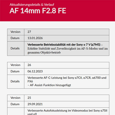 Schau auf der Homepage bzw. der Seite deines Objektivs, ob es ein firmwareupdate gibt. Die Details sind dann dort beschrieben. Wenn es kein update gibt, sollten auch keine Probleme mit der Kompatibilität auftreten. Nach nun rund 5 Monaten haben alle Dritthersteller soweit nachgezogen.
