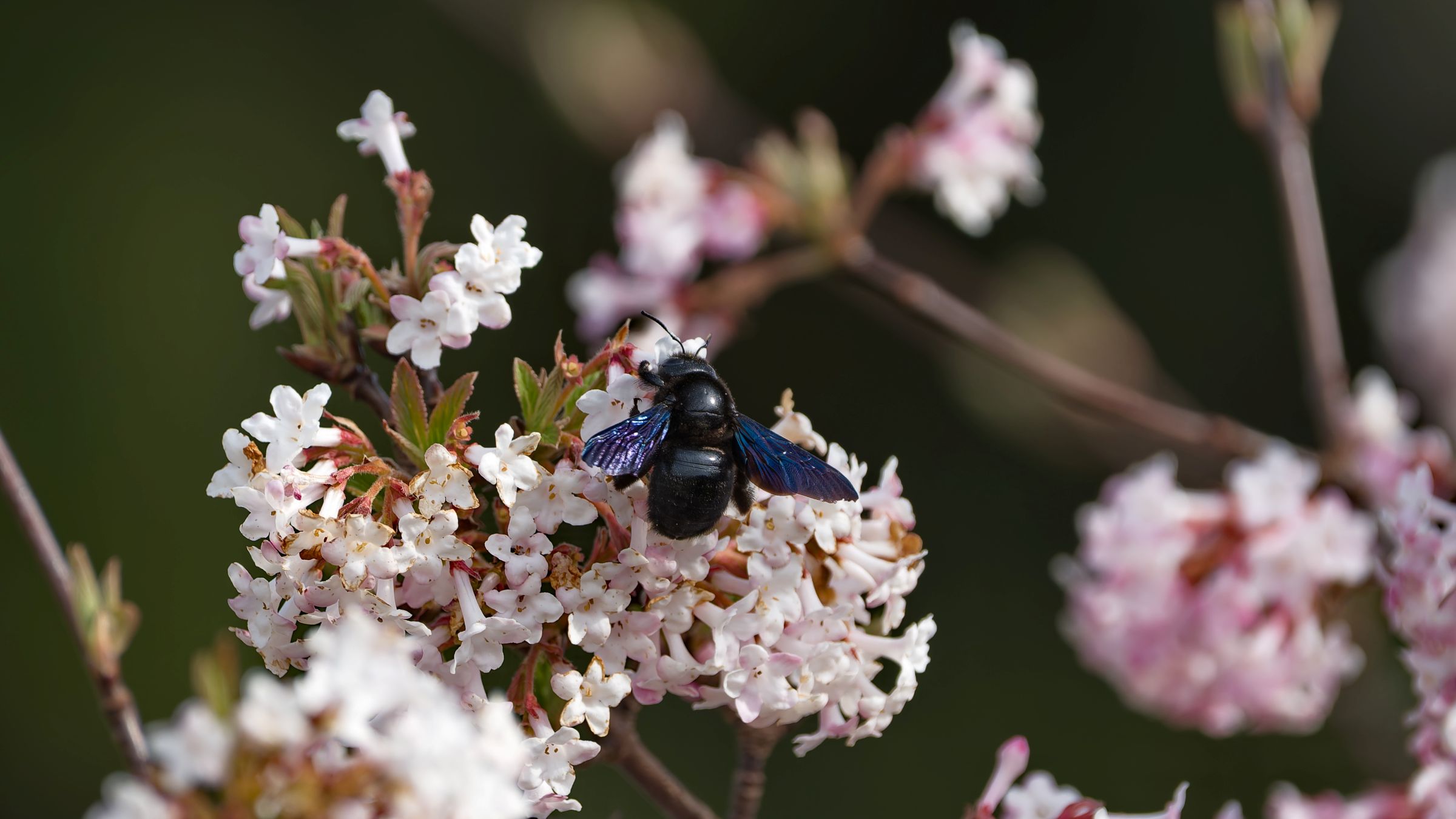 Ich war am Wochenende im Garten unterwegs und hätte eine Holzbiene am Schneeballstrauch anzubieten.