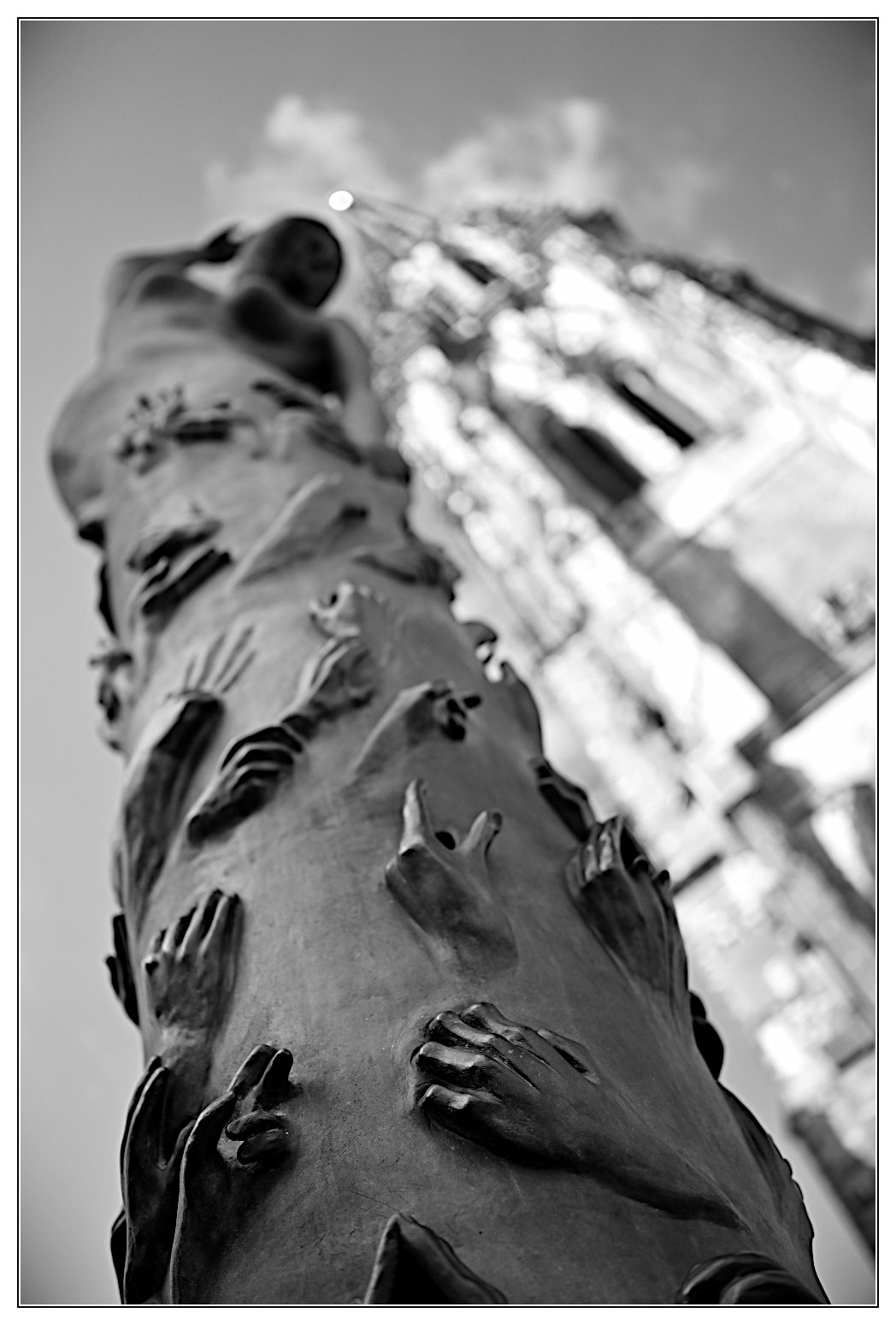 Mein Bild für heute: → Bild in der Galerie Um dieses Kunstwerk gescheit ablichten zu können, bin ich quasi druntergekrabbelt. Anders wäre die Umgebung (Frankfurt, Bankenviertel) immer mit drauf.