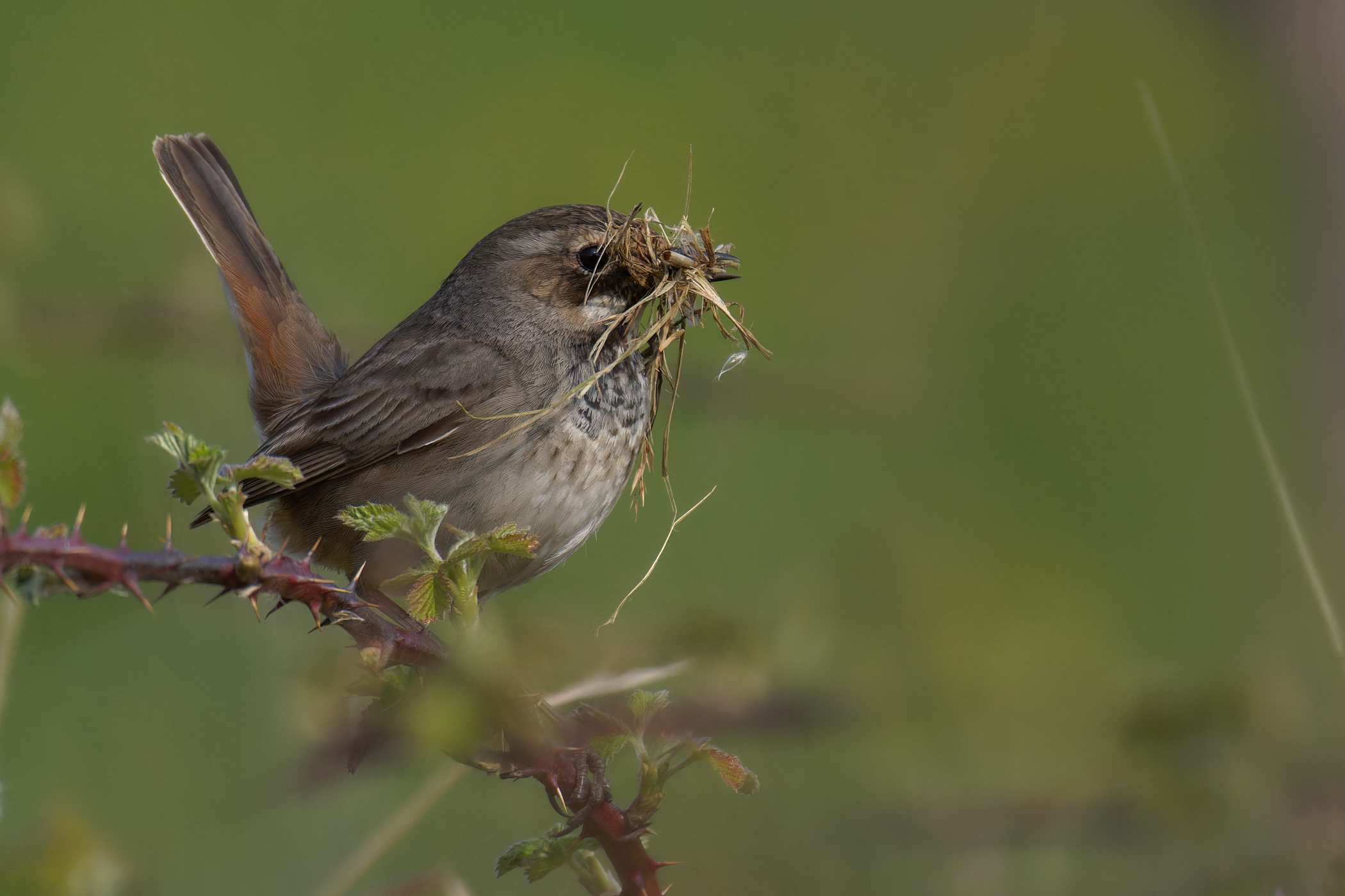 Hui was ein Witz. Das fast unscheinbare Weibchen beim Nestbau. → Bild in der Galerie Grüße ! Dirk