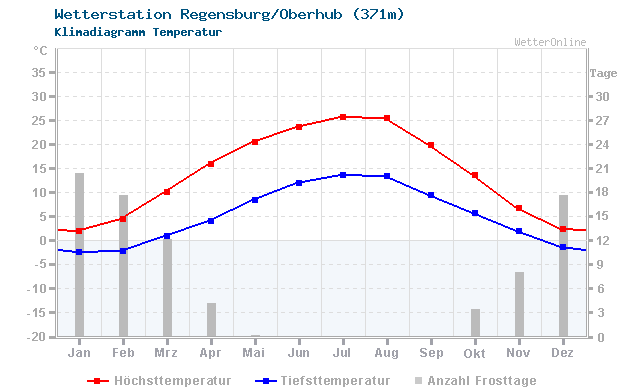 Und was ist mit dem Thermofenster? Die Abgasreinigung soll ja beim Zafira nur zwischen 17 und 33 Grad die Euro 6 Grenzwerte einhalten. Hier mal das Klimadiagramm von Regensburg einschl. der Anzahl der Frosttage.