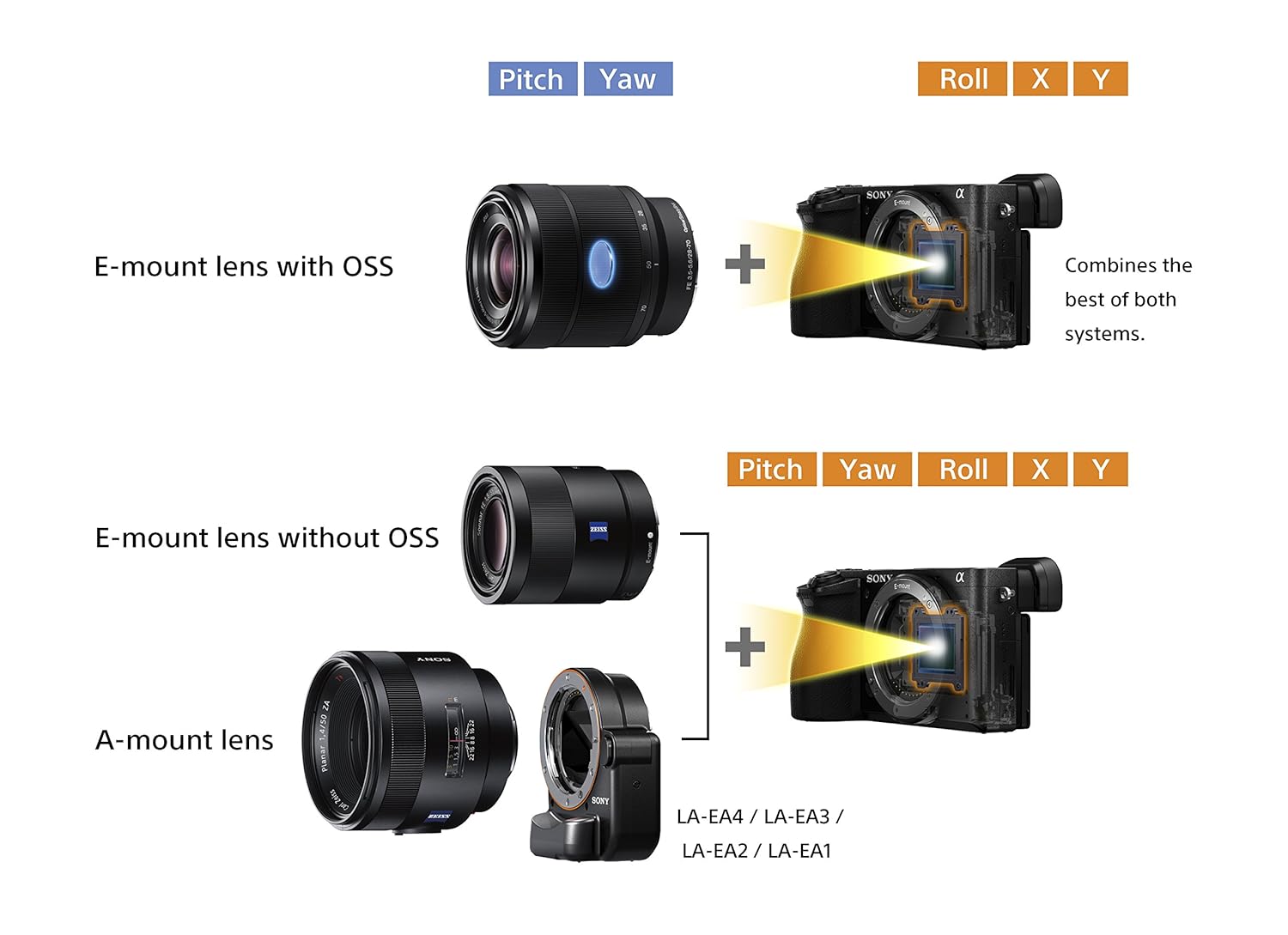 Wenn das Objektiv OSS hat, dann übernimmt es anteilig die Stabilisierung (Pitch / Yaw).