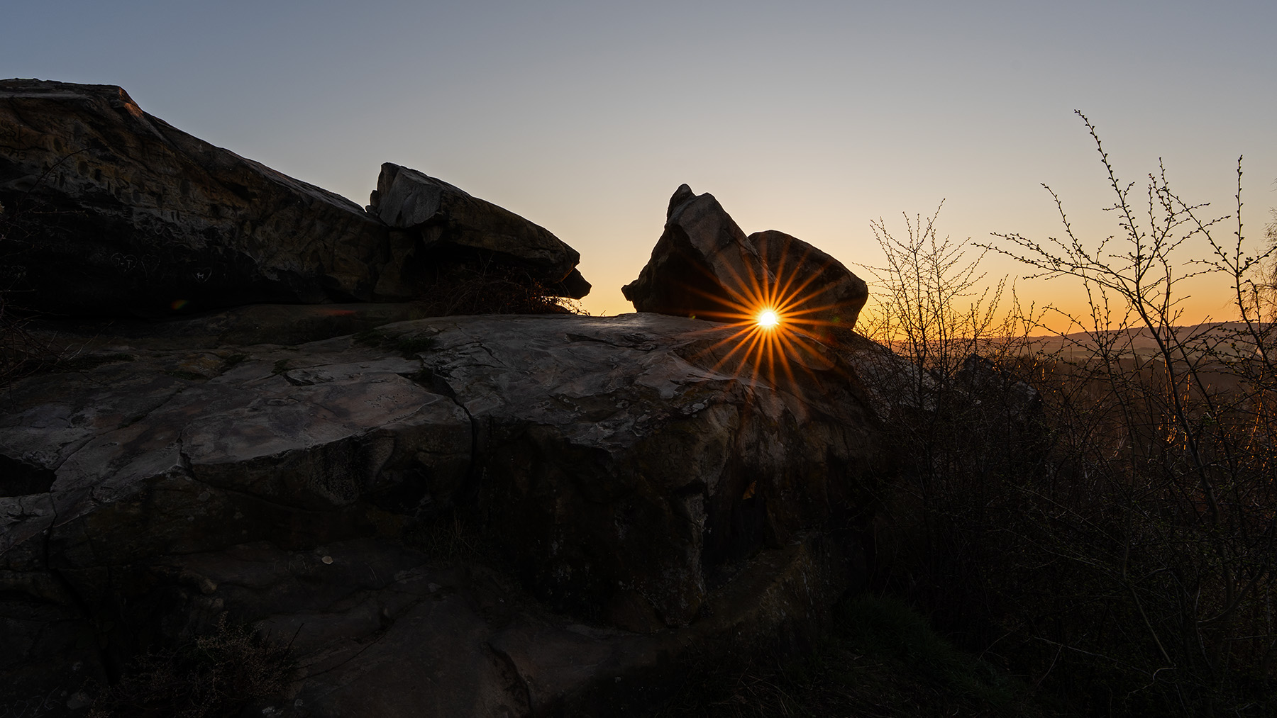 Als Ergänzung noch, für Harald, an der Teufelsmauer. Um diese Zeit waren wir noch völlig alleine dort unterwegs. Meine Frau sagt immer, wenn ich mit so einem 'Sonnensternenbild' komme: "Angeber!" → Bild in der Galerie