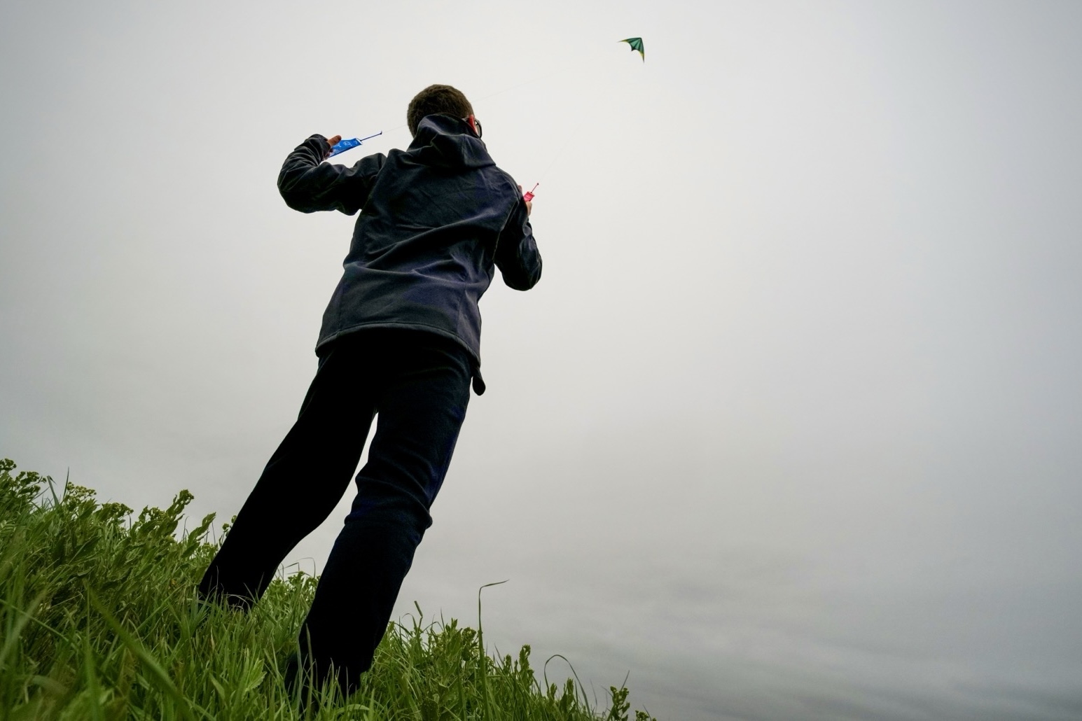 Heute morgen habe ich den Sturm bei grauem Himmel in Le Tréport genutzt, um diesen jungen Drachen-Bändiger fürs Monatsthema abzulichten.