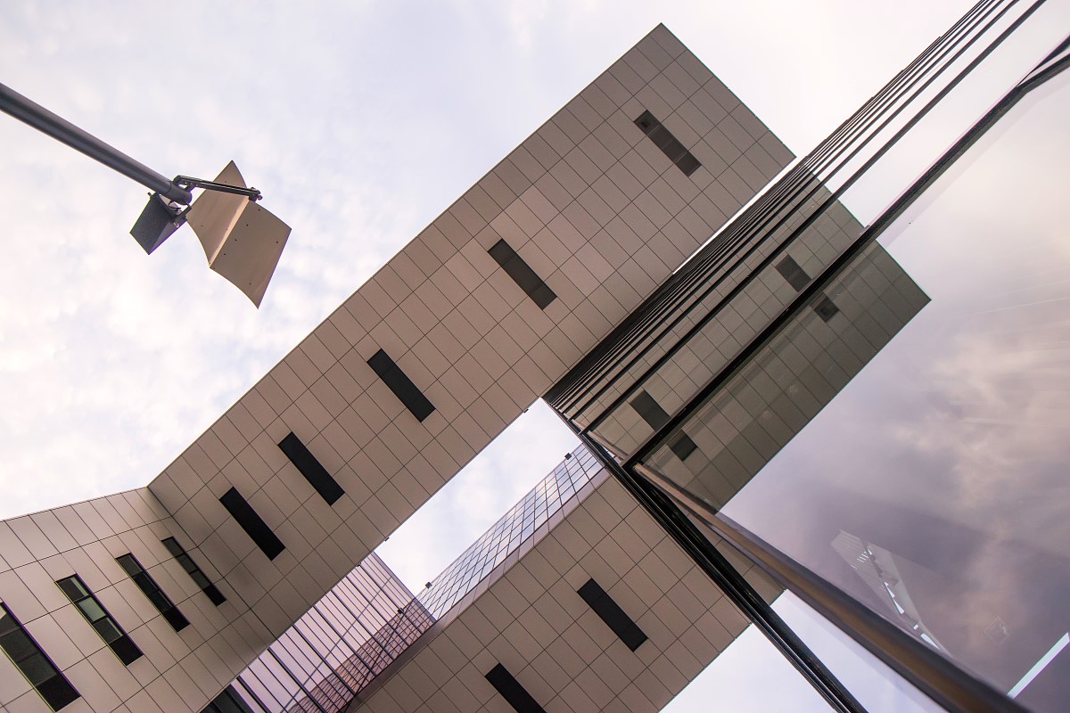 DanaDa war ich leider noch nie, aber wir haben hier ein Bild, mit dem man sich auch länger beschäftigen kann. Da ist zum einen diese Lampe, die so aussieht, als hielte sie dem Gebäude ein Manuskript hin, auf dass er schön vortrage. Es könnte aber auch eine Arbeitsanweisung sein, wie das Stück Glas zwischen seinen Zangen zu bearbeiten ist. Dann wäre da noch das Törtchen in Kastenform, das vom Tortenheber wie von einer Guillotine geköpft wurde und gleich im Verkauf landet. Wir sehen hier eine harmonische Ausgestaltung der Kranhäuser, das Licht war der Fotografin hold, keine Sonne, die sich in den Spiegelflächen ausbrennt oder sonst sich störend in das Bild schummelt. Ich möchte mich etwas tiefer positionieren und das Bild nach rechts schieben, so dass die Glaskante als Eckläufer landet und auf der linke Seite die Mitte der Fensterfront es ihr gleich tut. Als Belohnung für dieses schöne Bild gibt es jetzt noch den Helge in der Umschulung zum Kranführer.