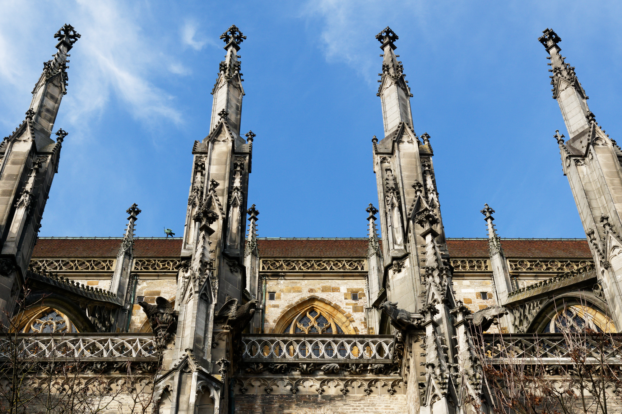 bruno5Aus dem Ulmer Münster hat man mich mal rausgeschmissen. Es war Sommer, sehr heiß, ich vielleicht 5 Jahre alt und habe es gewagt, mit kurzer Lederhose das Gotteshaus zu betreten. War also ein kurzes Vergnügen. Du hattest offensichtlich das gleiche Glück und musstest Dich draussen amüsieren. So richtig von unten ist das jetzt nicht, da verweise ich doch gerne auf das Foto vom Jeck us Kölle mit seinem Kölner Dom. Zumindest hast Du aber technisch rausgeholt, was technisch zu machen war. Die Türmchen sind sauber ausgerichtet, die Front gerade. So mögen wir das!