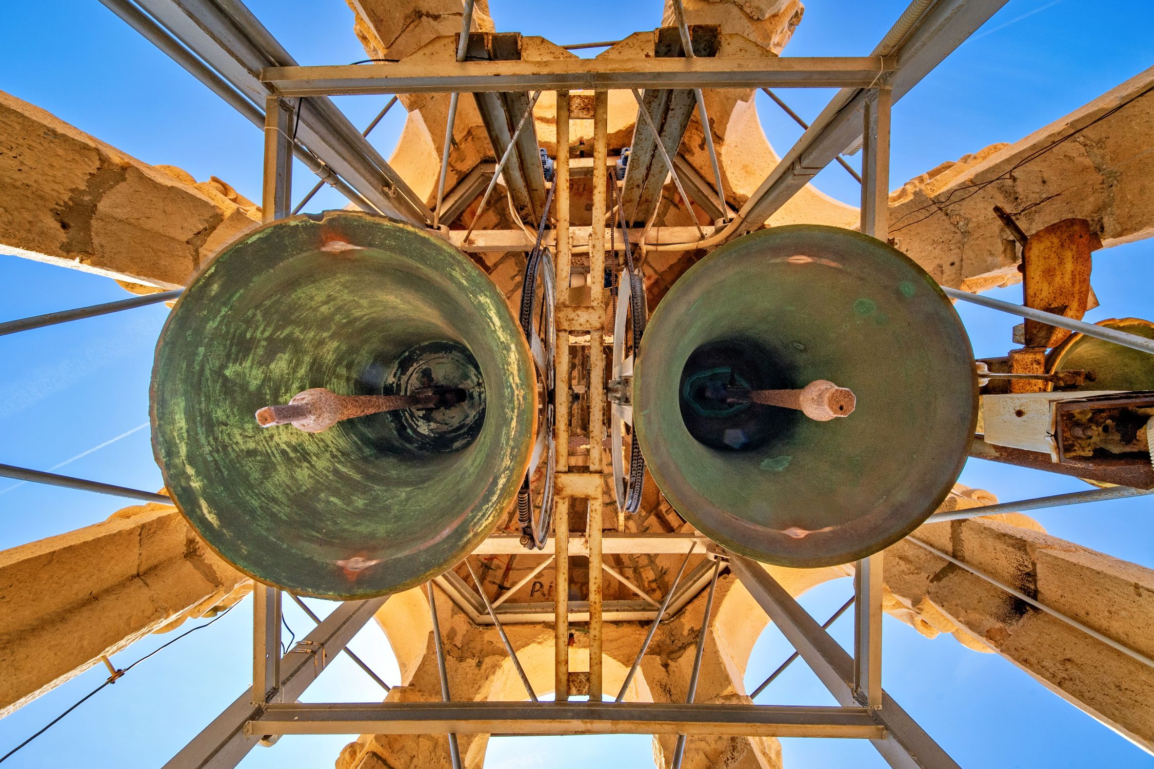 ThunderAIDas sind aber fette Glocken, auf die ich da starren darf. Eine minimal verdrehte Aufnahme und der angerostete Charme vergangener Tage erinnert an die Unvollkommenheit und Vergänglichkeit allen irdischen Seins und lässt unseren den Blick nach oben gehen, wo wir unsanft auf die Stahlkonstruktion prallen. Solche Perspektiven lieben wir!