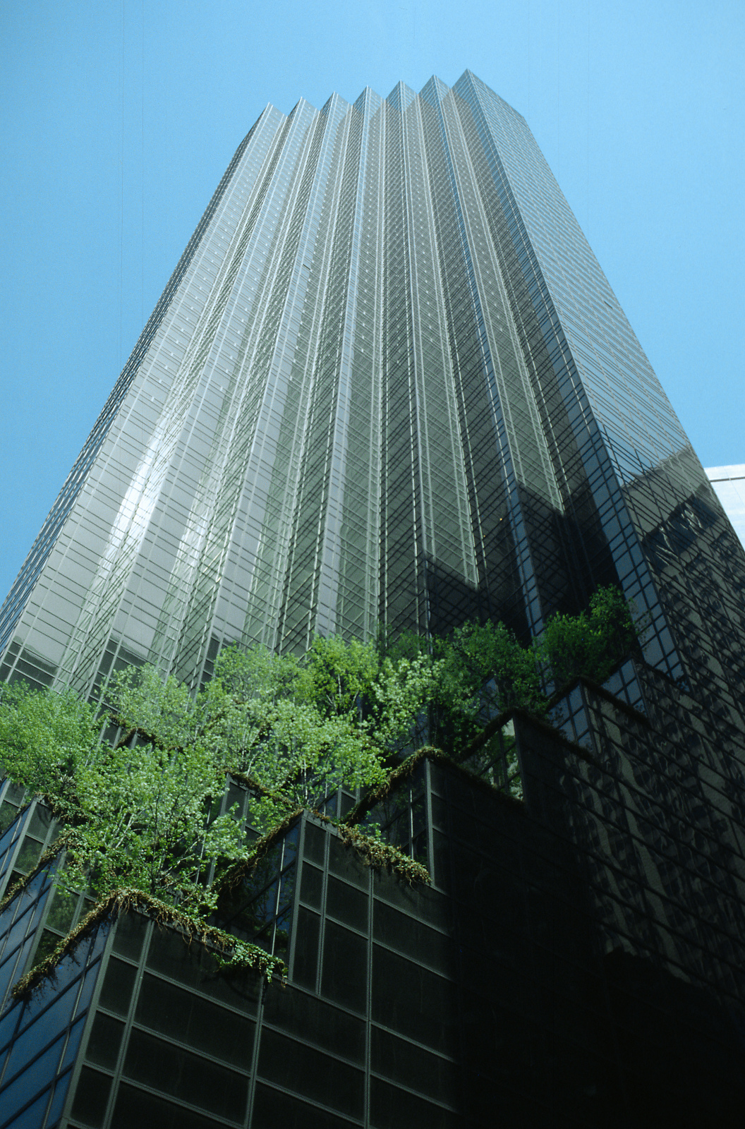 bruno5Zu allererst Glückwunsch zu der Qualität Deines Scans. Das ist schon ein anderer Look mit der alten Technik als die heutigen Bilder, die eher hart und unbarmherzig daherkommen. Dein Licht ist weich und schmeichelt der Symbiose aus dem gläsernen Giganten und dem beherzten Grünzeug. Es ist erfrischend und zeigt, dass selbst die Natur den Weg nach oben sucht. Man möchte fast meinen, diese Bäume hätten die Höhenangst im Griff! Ein Bild, das im wahrsten Sinne die Perspektive wechselt und dich als Architekturfotograf in einem neuen Licht erstrahlen lässt. Tolles Foto!