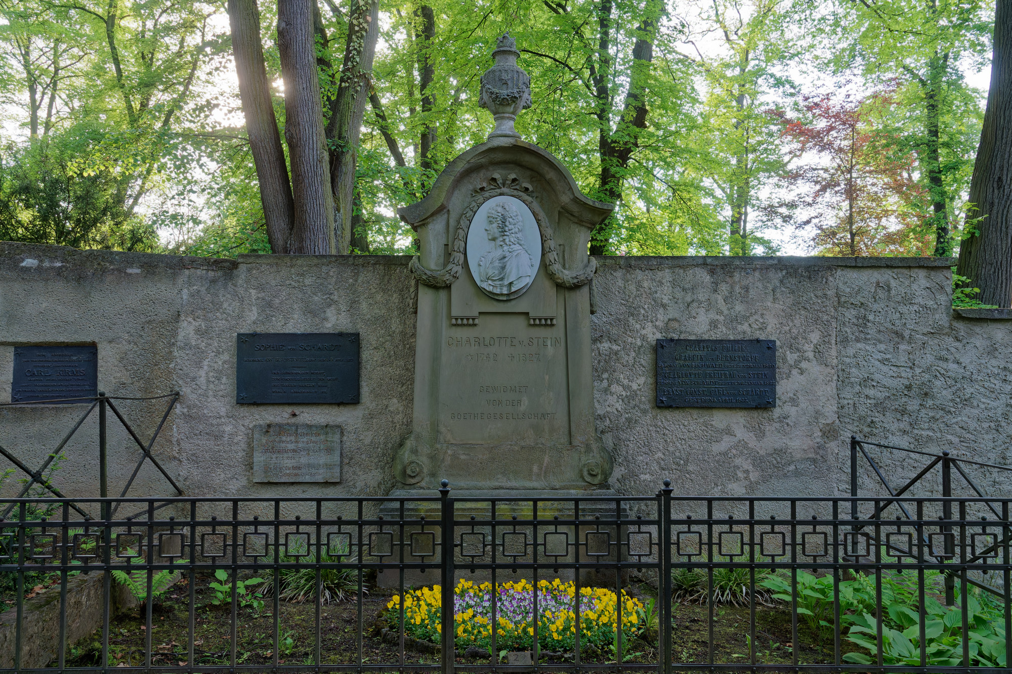 Friedhöfe als Orte der Stille hatten wir ja schon im MT. Heute ein Bild vom Historischen Friedhof in Weimar, der auch zum UNESCO Weltkulturerbe zählt. Es zeigt das Grab von Charlotte von Stein, einer engen Freundin von Johann Wolfgang von Goethe.