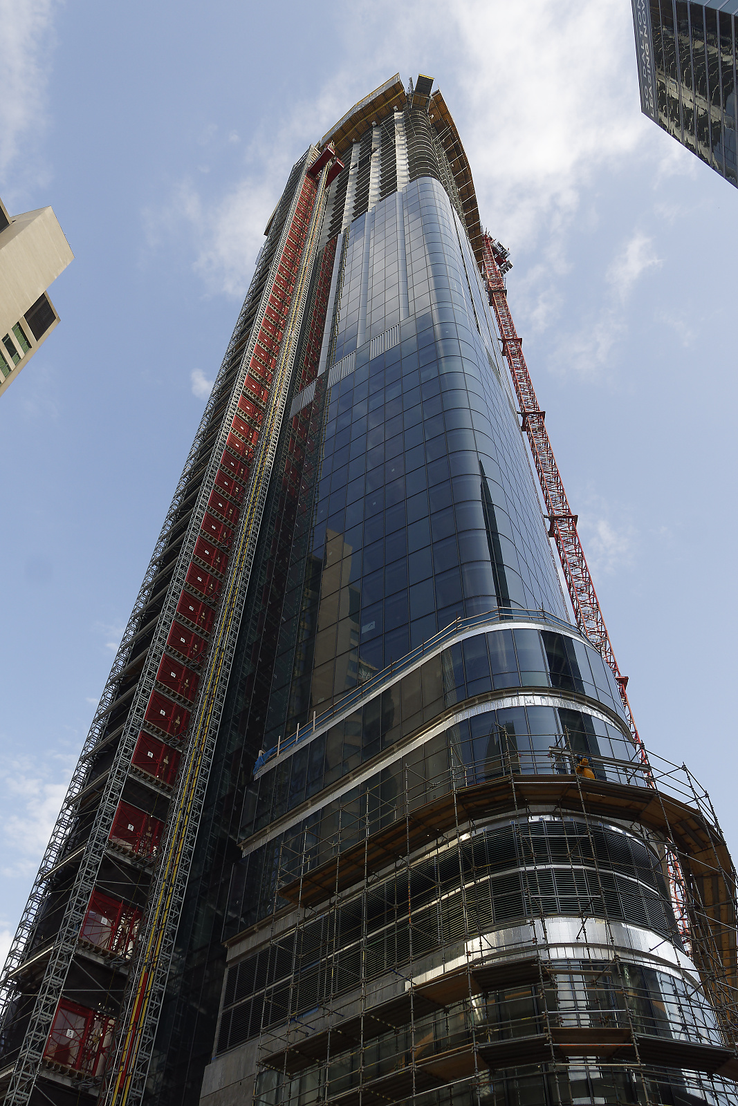 Heute ein Bild von einem sich 2018 noch im Bau befindlichen Wolkenkratzer in Boston. Ich fand es faszinierend, daß an den unteren Stockwerken schon die gläserne Fassadenverkleidung angebracht war und es schon an den Innenausbau ging, während es ganz oben noch mit dem Rohbau weiter in die Höhe ging.