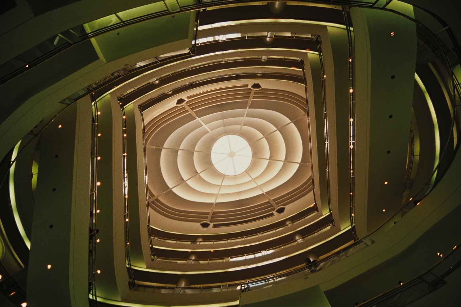 EffjotterSo schlecht sieht das doch nicht aus. Vor allem könnte man in der Nachbearbeitung durchaus noch was rausholen. Denn vom Motiv her würde es sich schon lohnen. Nicht nur weil das Bild so nicht mehr zu machen ist. Die vielen konzentrischen Ebenen habe ein starke Tiefenwirkung und öffnen den Raum nach oben. Es gibt eine klare Blickführung in die helle Bildmitte. Für mich ist das ein sehr dichtes Architekturbild das mit Ordnung und einer gewissen Eleganz daherkommt. Passt gut hier rein.