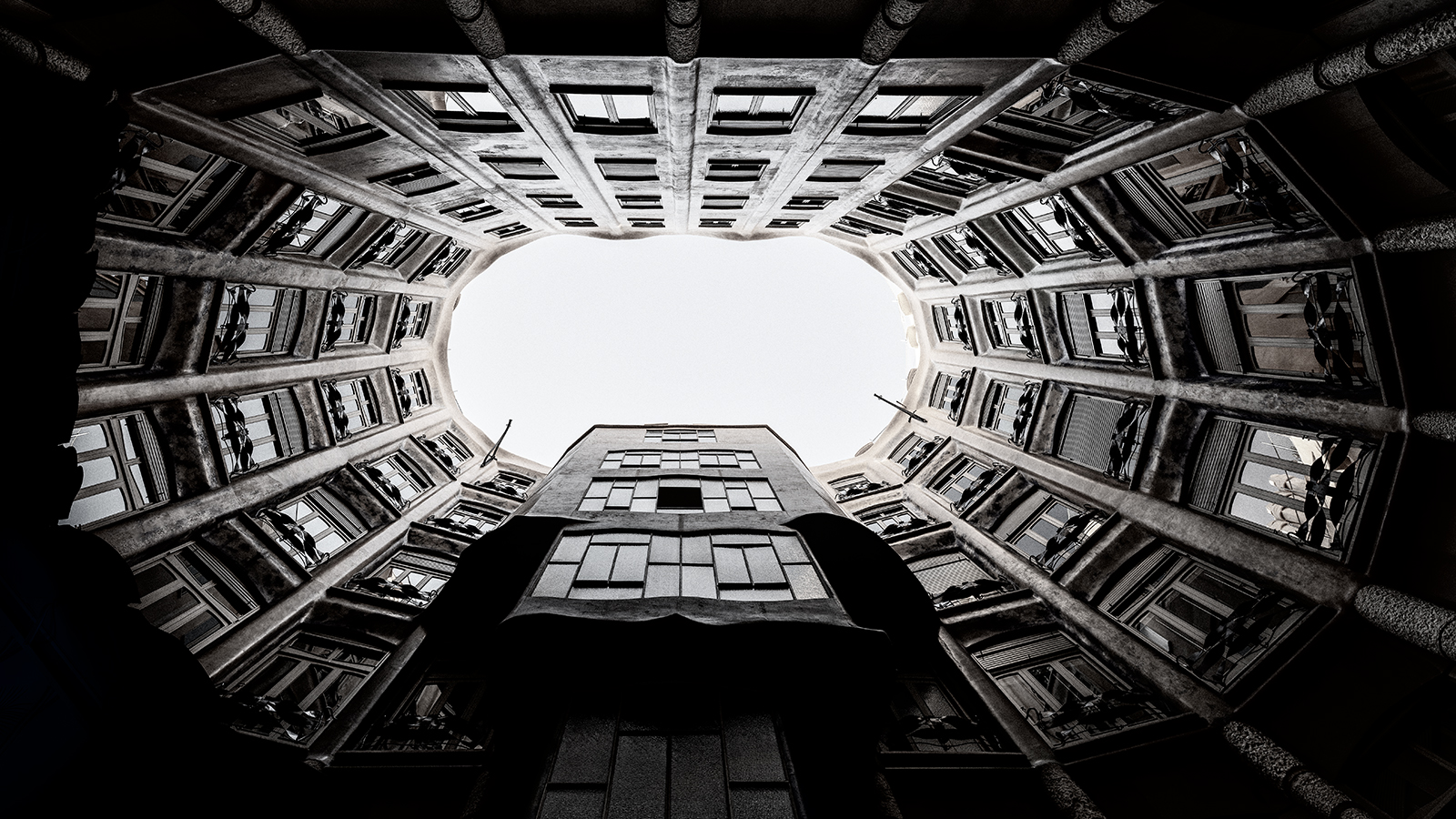 heute schaue ich im Innenhof der Casa Milá (aka "La Pedrera") in Barcelona nach oben. Dieses Gebäude in Barcelona wurde ebenfalls von Antoni Gaudí errichtet und war zum Zeitpunkt der Errichtung (1906-1912) eines der modernsten Häuser der Welt (zentral Heizung und Warmwasserversorgung, Elektroinstallation). Dat Ei