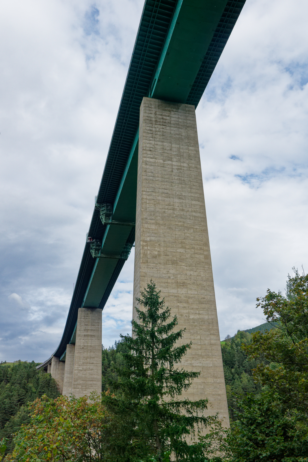 Wer von Innsbruck zum Brenner hochfährt, kennt natürlich die Europabrücke, die das Wipptal überspannt. Heute mal der Blick von der Brenner Bundesstraße hinauf zur Europabrücke mit der Autobahn A13.