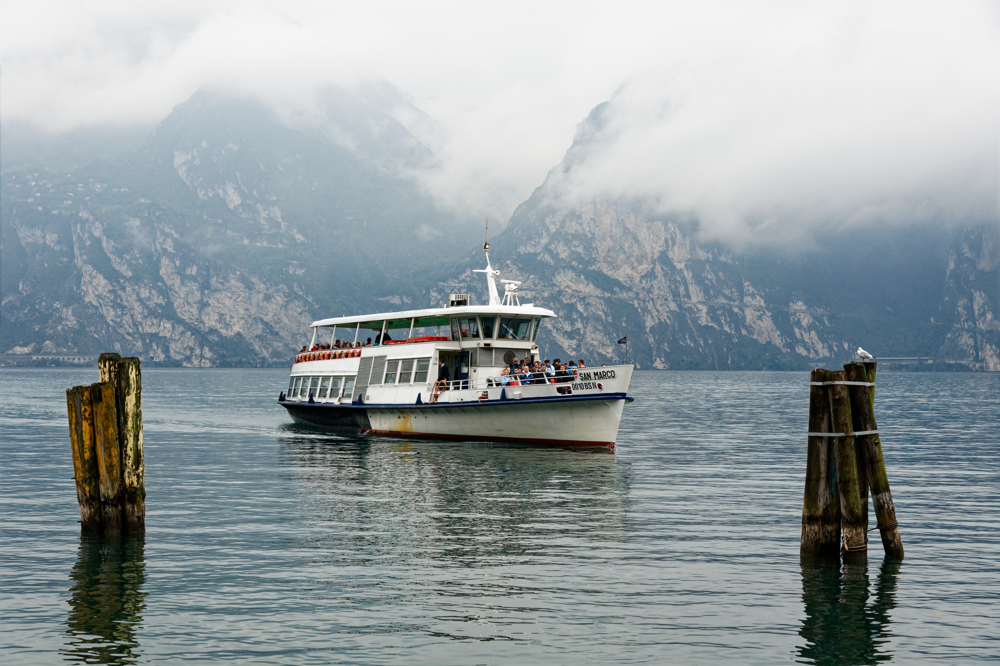 Hallo Harald, vielen Dank für Deine Gedanken zum Bild. Was man auf dem Bild im Vordergrund sieht, ist kein Wasservogel, kein U-Boot und auch kein ferngesteuertes Modellboot sondern ein ausgewachsener Ausflugsdampfer auf dem Weg von Torbole in den Süden. Ich zeige hier mal ein Bild der San Marco, die zusammen mit vielen anderen Schiffen im Linienverkehr auf dem Gardasee eingesetzt wird. Diese Art von Schiff ist auf dem Bild von hinten zu sehen. Das Bild wurde von einer Anhöhe oberhalb des Nordendes des Gardasees aufgenommen und man überblickt den Gardasee in seiner ganzen Länge von mehr als 50 km bis zur Rocca di Manerba. Der auffällige Monte Castello überragt den See um etwa 700 m! Damit sollten die im Bild sichtbaren Dimensionen etwas besser verständlich sein. Das Schiff wirkt auf dem Bild ja wirklich wie ein Spielzeug.