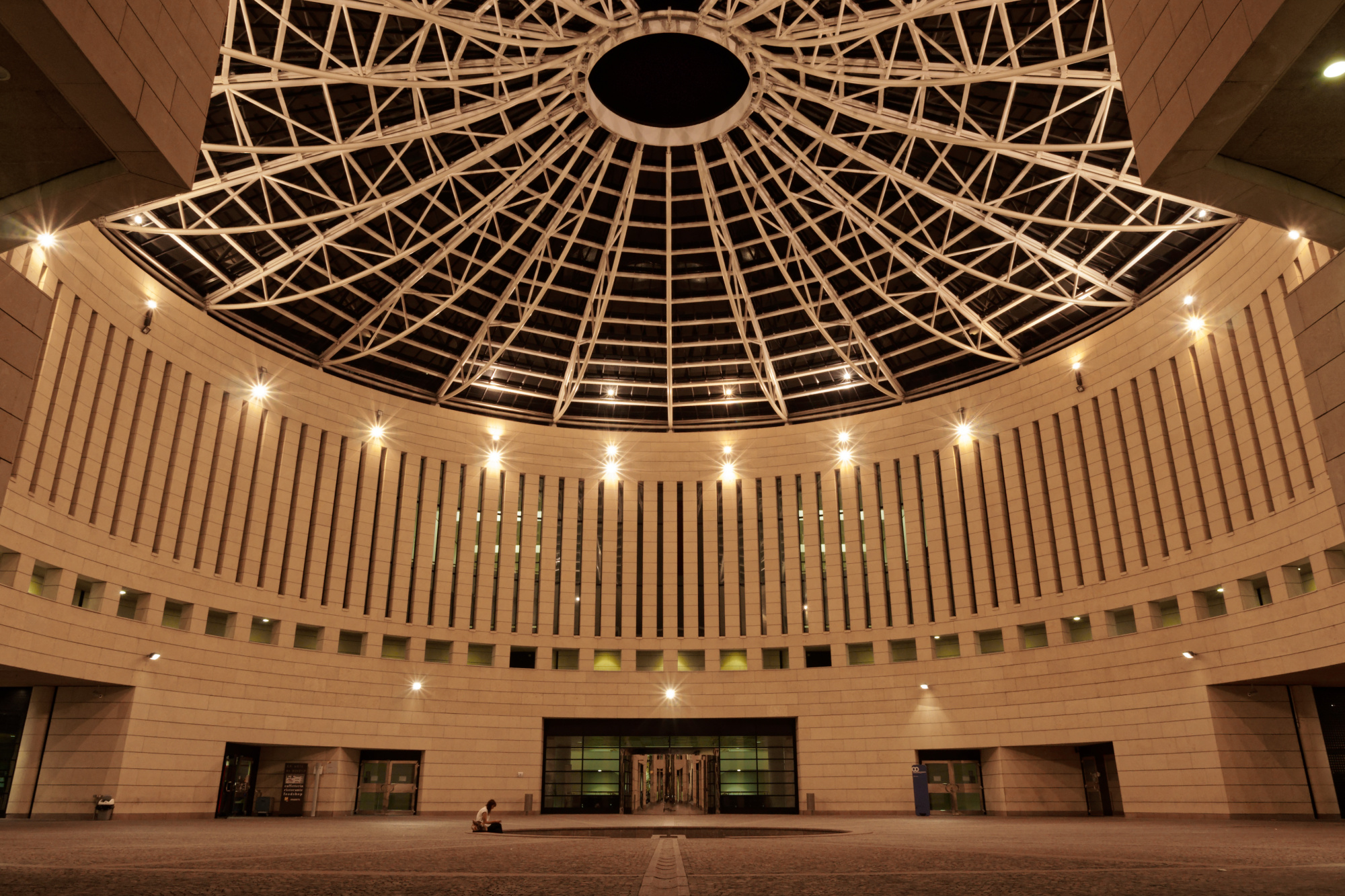 MART Rovereto Als ich das Bild noch klein als Thumbnail sah, dachte ich, Du zeigst das Innere einer Moschee. Doch auch geöffnet wirkt es nicht weniger beeindruckend. Die Perspektive ist hervorragend gewählt, so dass das winzig wirkende Menschlein in der Mitte geradezu verloren erscheint – ertrunken in einem Meer aus Stille und Einsamkeit. Das passt hervorragend zum Thema! Überhaupt wirkt das Innere des Museums wesentlich spektakulärer als die quadratische Außenansicht. Tolle Aufnahme! (PS. Danke für die Aufklärung zum gestrigen Bild!)