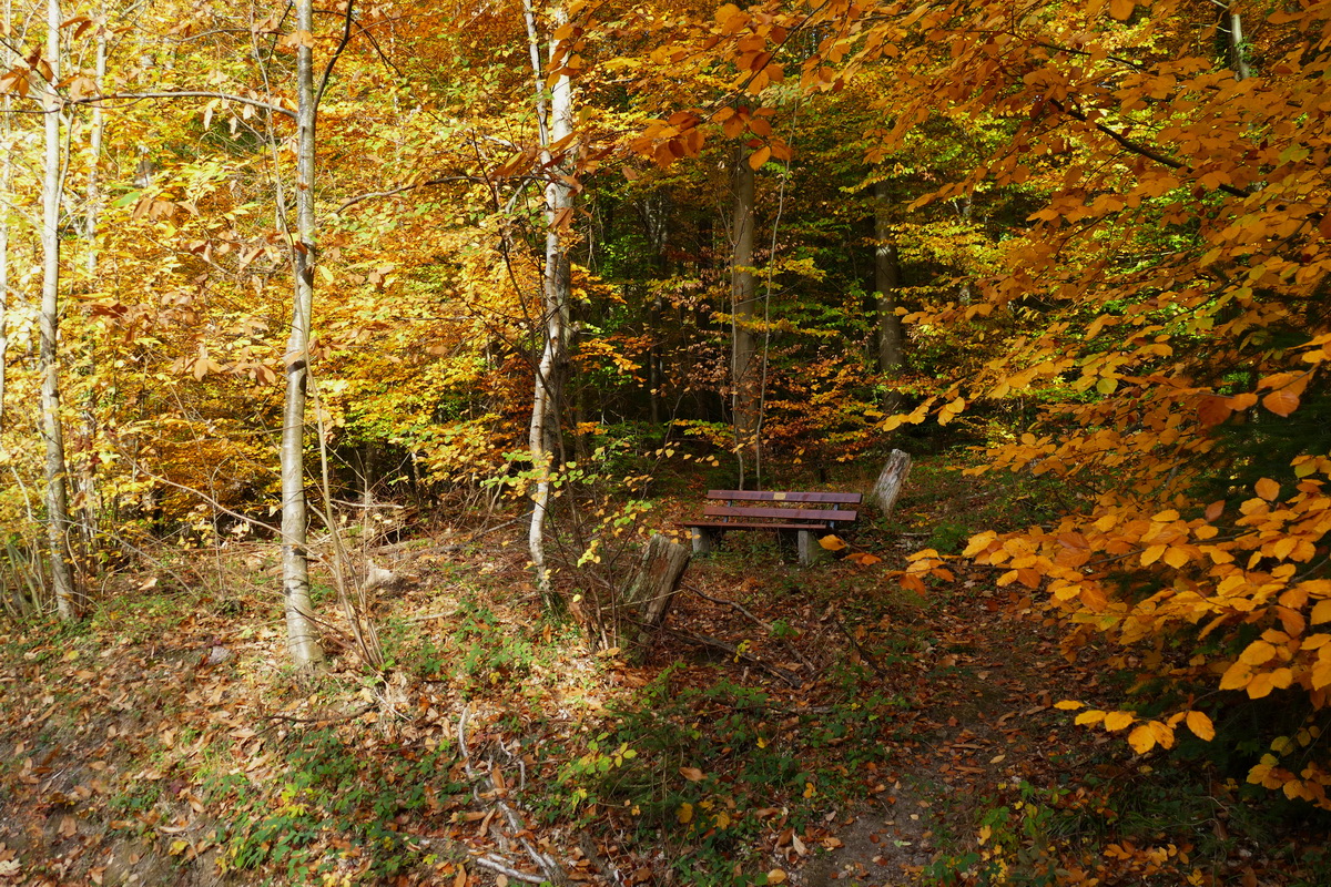 | hier ist sehr still Ja, Hermann, das glaube ich Dir aufs Wort: Hier ist es seeehr still. Eine hölzerne Sitzbank, ruhig, abgelegen und friedlich in einem Waldflecken versteckt, umgeben von einem herbstlich verfärbten Blätterteppich. Vermutlich ein Geheimtipp für Liebespaare oder sonstige Zeitgenossen, die ungesehen sein wollen oder eben die Stille suchen. (oder für getresste Rentner)Schön entdeckt und auch gut fotografiert. Denn indem Du viel baumbestandene Umgebung drangelassen hast, blickt der Betrachter ein wenig wie durch ein Brennglas auf die Bank. Das Metallschildchen an der Lehne verrät, dass diese einst wohl von guten Seelen gespendet wurde. Warst Du das etwa?