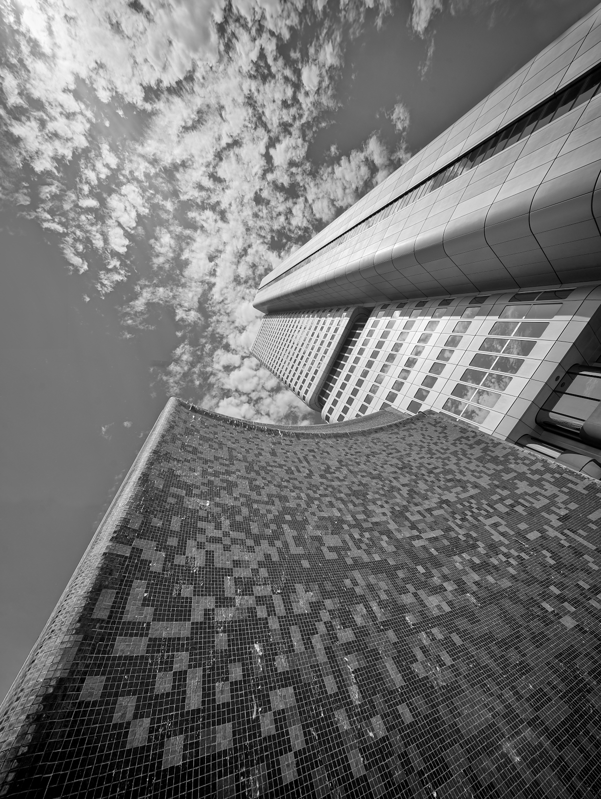 HoStDas ist doch ein guter Einstieg in die heutige Bilderserie. Wohl durchdacht und fein komponiert sieht das aus. Auch die Wolken sind gut in die Bildgestaltung integriert. Besonders spannend finde ich den Kontrast zwischen der glatten, modernen Fassade und der strukturierten Fläche im Vordergrund. Genau diese Mischung macht das Foto lebendig und interessant. Die Sonne lässt die Tonwerte oben rechts leider etwas ausfressen. Ich finde, das stört die Bildwirkung. Wenn du das abmildern würdest und eine leichte Vignette um den Blick noch besser zu lenken… Nur so eine Idee.