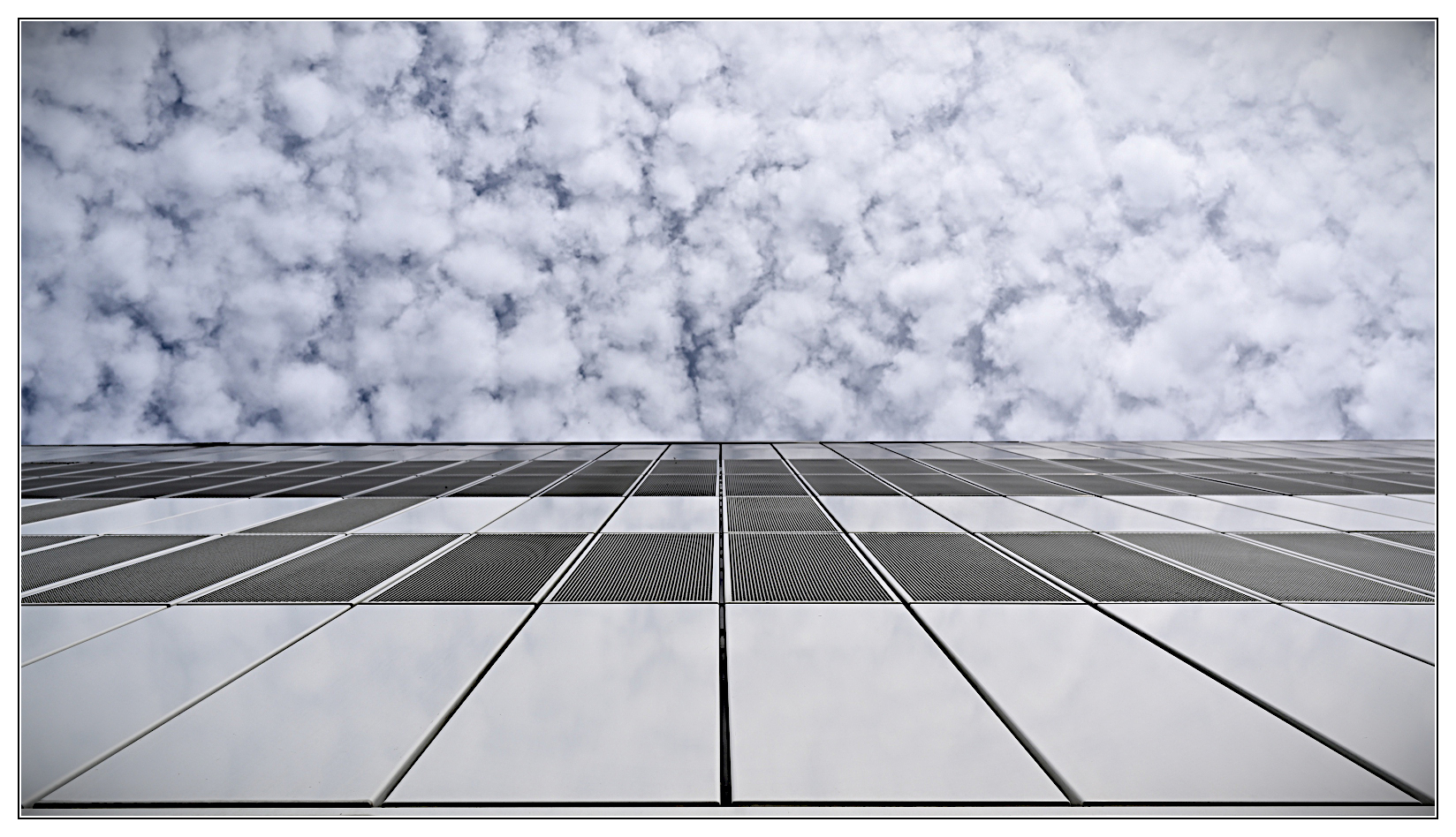 CrimsonDas scheint mir sowohl von aussen als auch von innen ein sehr attraktives und interessantes Gebäude zu sein. Den Schnitt finde ich hier garnicht ungewöhnlich, ganz im Gegenteil. Du hast dich für fast mittig entschieden und ich halte das für genau richtig. Die beiden Bildhälften stehen jeweils für sich und bringen eigenständig Abwechslung ins Bild. Dadurch entsteht ein spannender Gegensatz zwischen der glatten, festen Architektur und dem weichen, lebendigen Himmel. Auch die reduzierte Farbigkeit gefällt mir gut, weil sie das Bild sehr ruhig und sachlich wirken lässt. Eine tolle Aufnahme mit klarer Linie und schöner grafischen Wirkung. Das hast du gut gemacht.