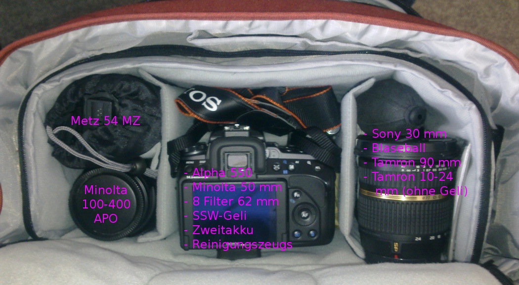 Einen dieser Rucksaecke gab es auch im Saturn und ich wollte eigentlich auch etwas dazu schreiben, hatte aber den Namen nicht mehr im Kopf. Ich mag viele Ideen an dem Rucksack, aber einige der Objektivfaecher sind sehr, sehr schlecht zu erreichen, da man das Kamerafach nicht vollständig öffnen kann.