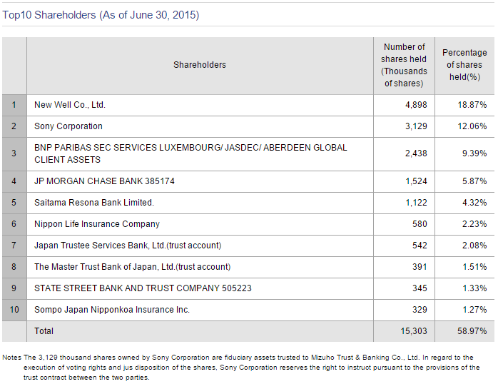 Sony ist mit 12,06% der zweitgrößte Aktionär bei Tamron. Und im Gegensatz zu den anderen Großaktionären tummelt sich Sony nun mal auch im Objektivgeschäft. Auch wenn Sony`s Anteile von einer Investmentfirma verwaltet werden, Einfluß nehmen die ganz sicher auf die Geschäftspolitik von Tamron.