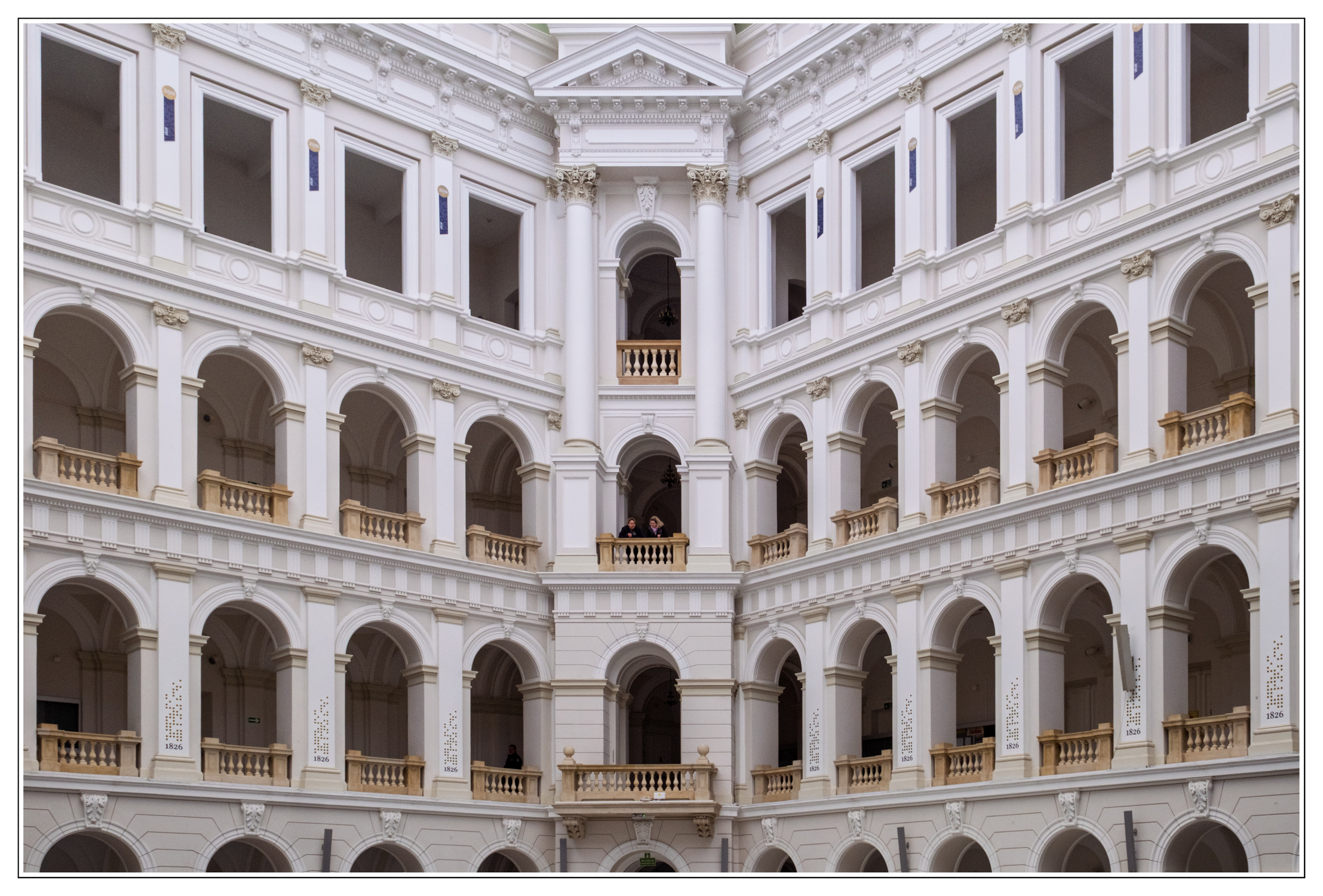 Die TU Warschau feiert ihren 200 Geburtstag. Unter anderem studierte Marie Curie an ihr. Hier zwei Bilder der Aula der TU. Für die Gedenkfeier waren die Handwerker am vorbereiten. Die Stuhlreihen waren schon aufgestellt, so dass man von außen diese Aula nur ablichten konnte.