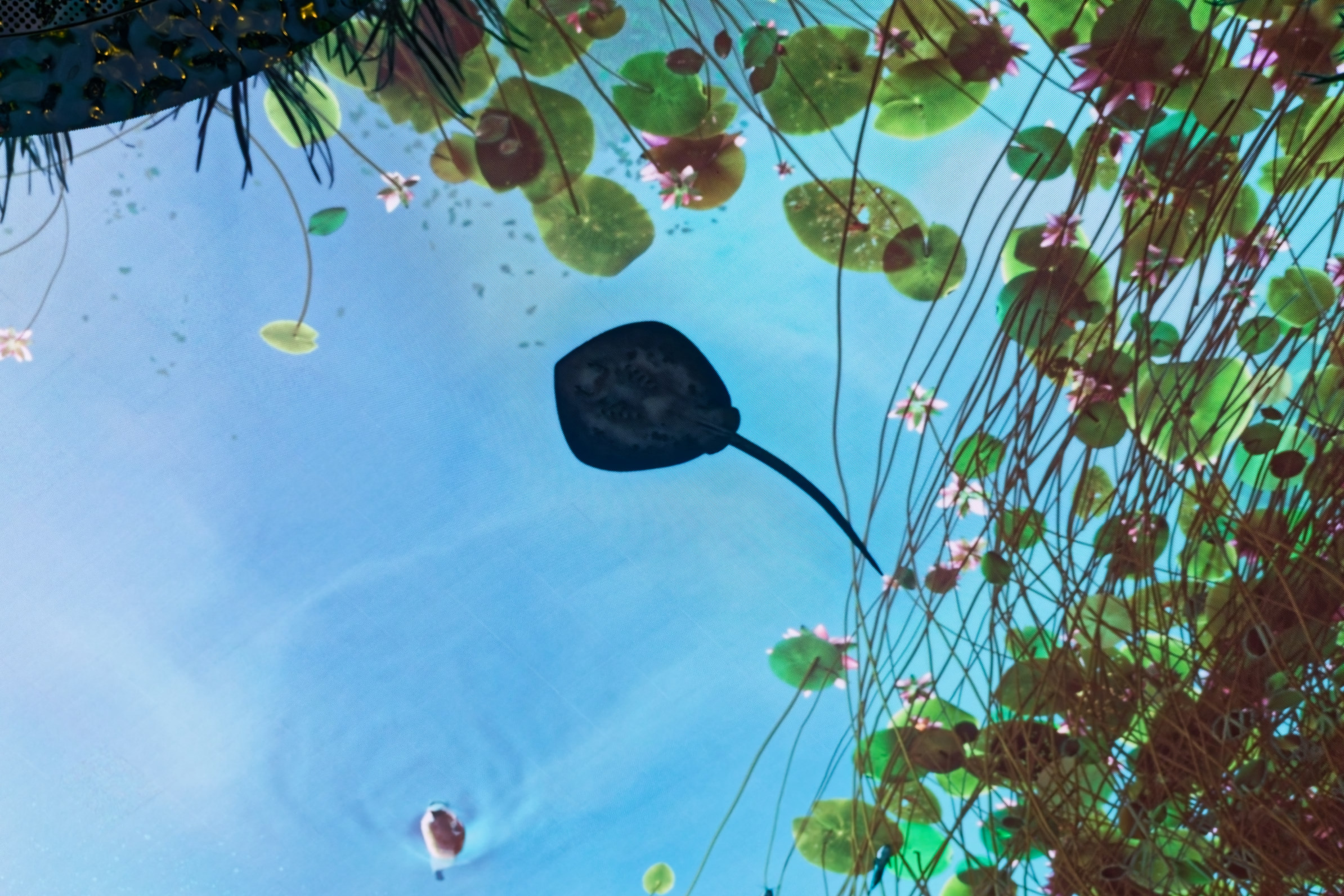 Die Decke dieser Wasserinstallation zeigt auf einem riesigen Monitor die Wasseroberfläche von unten...in bewegten Bildern.