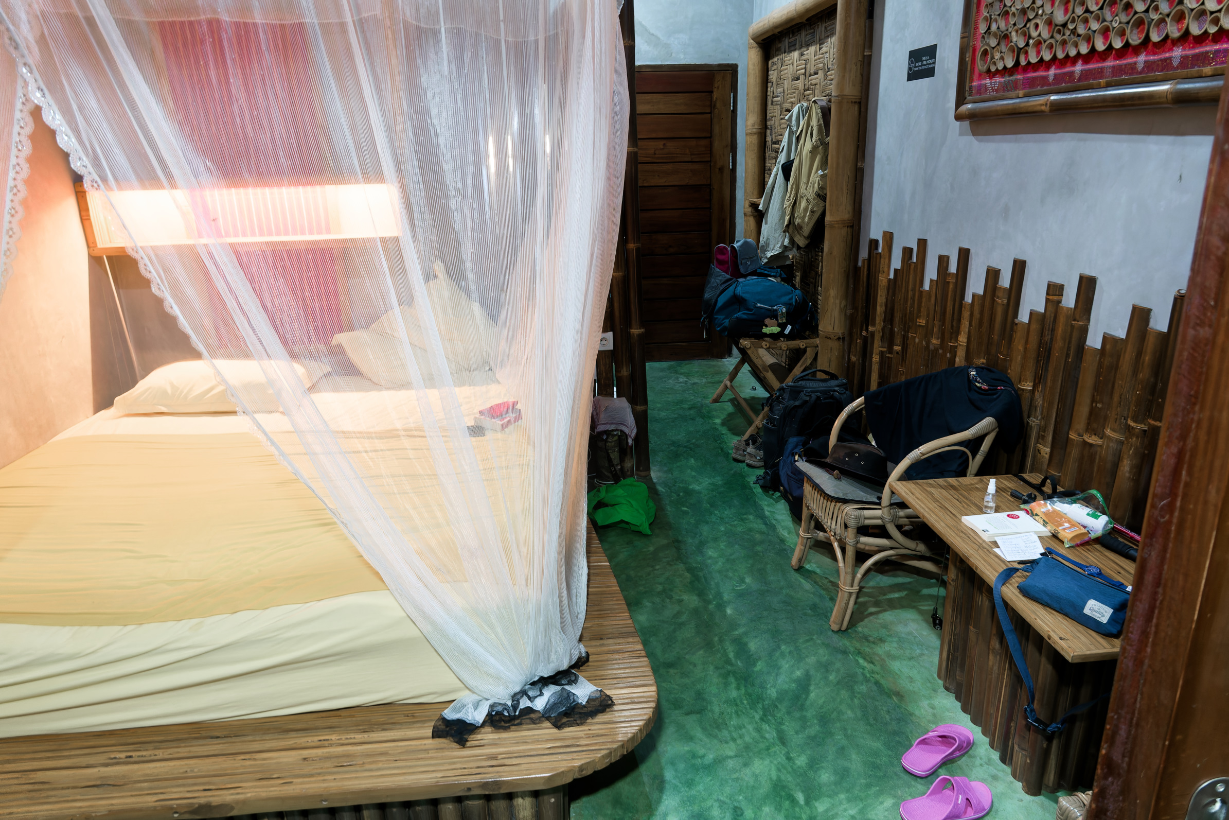 Die Lodge hatte übrigens einen sehr netten, einem indonesischen Langhaus nachempfundenen auf Stelzen stehenden - und stark schwingenden- Aufenthaltsraum