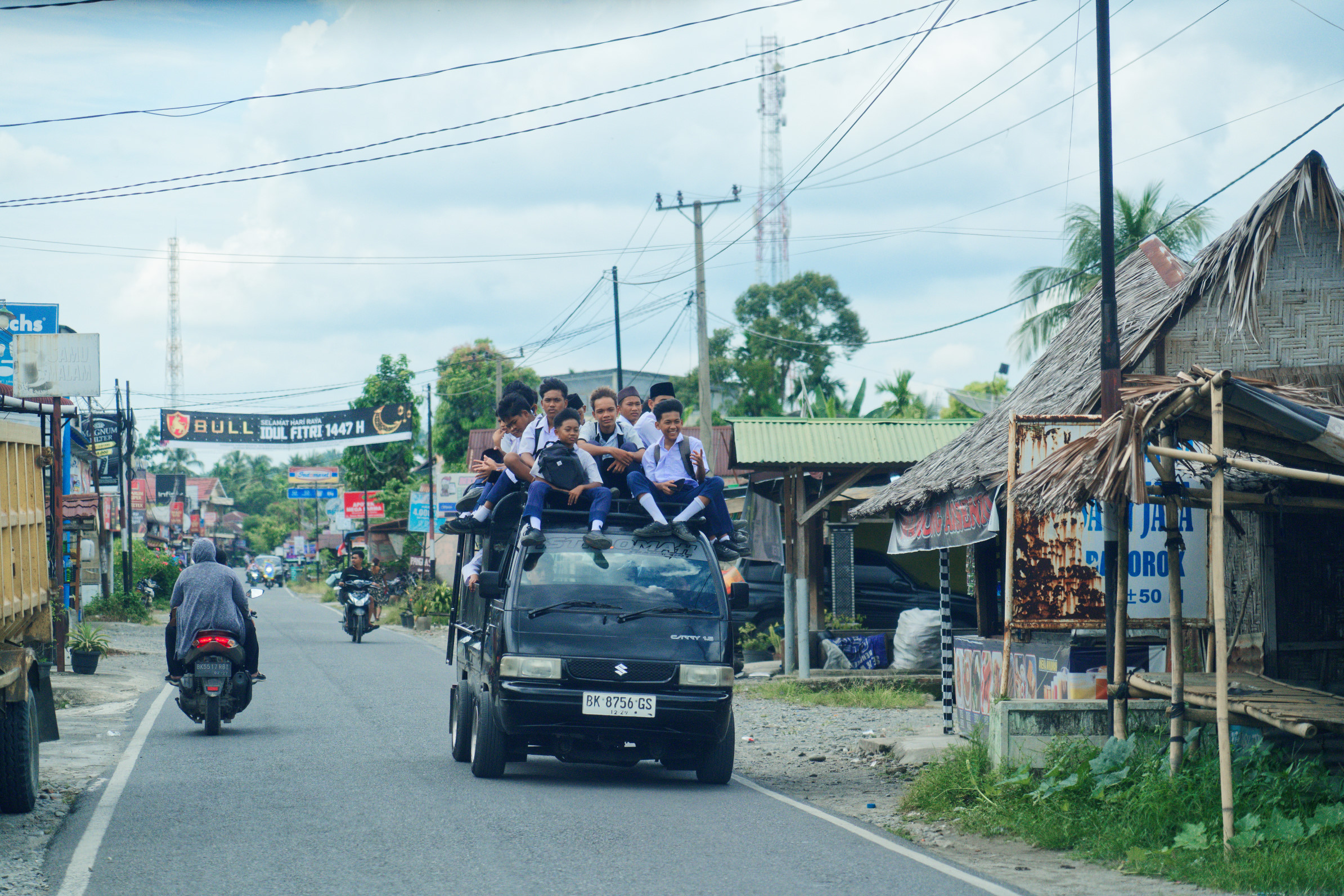 Wie überall in den Tropen erscheint die Fahrzeugnutzung Europäern oft ein wenig ungewöhnlich. Hier begegnete uns ein Schulbus: