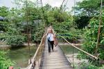 Wie schon erwähnt, verbinden viele schwankende Hängebrücken die beiden Flußseiten. Nach einiger Zeit lernt man, die zu überqueren, ohne dass sich die Schwankungen aufschaukeln. Anni konnte es sowieso.