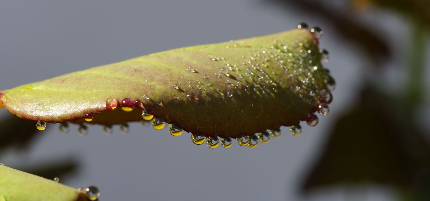 Regentropfen auf Rosenblatt