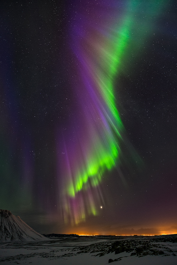 ... powerful northern lights over Iceland / geomagnetic storm index KP=8
