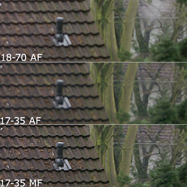 Testbilder - 35mm @ F5,6, zweimal mit Autofokus, einmal manuell fokussiert |
