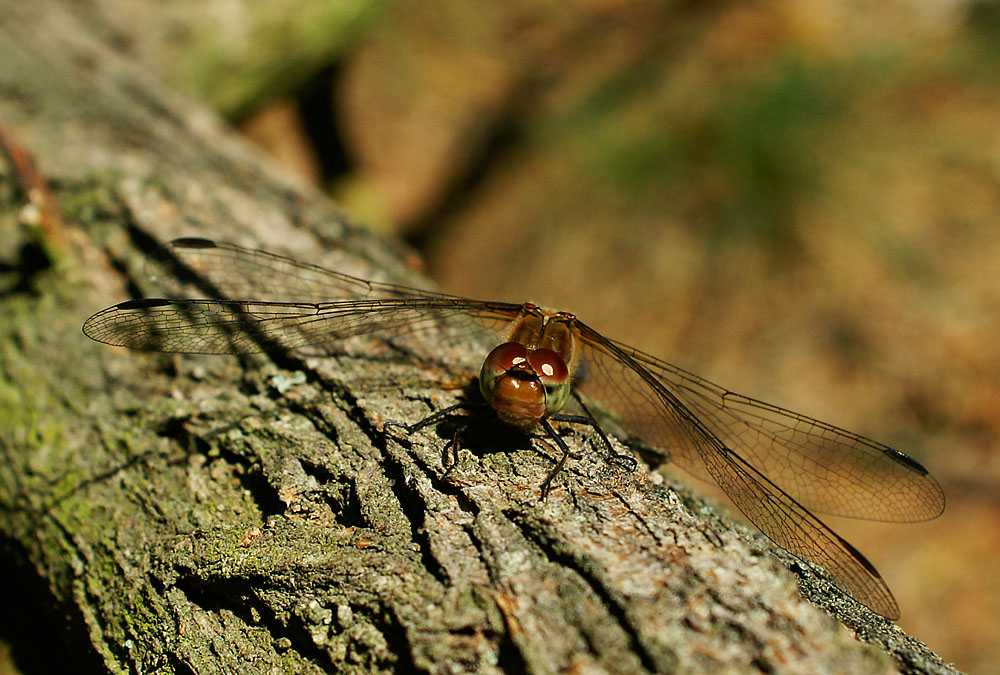 Libelle auf Ast, Frontalansicht |