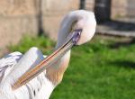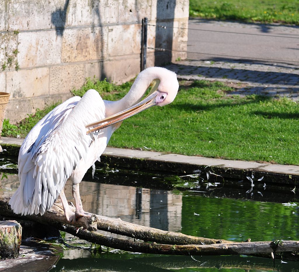 Zoo Wilhelma. Pelikan bei der Körperreinigung